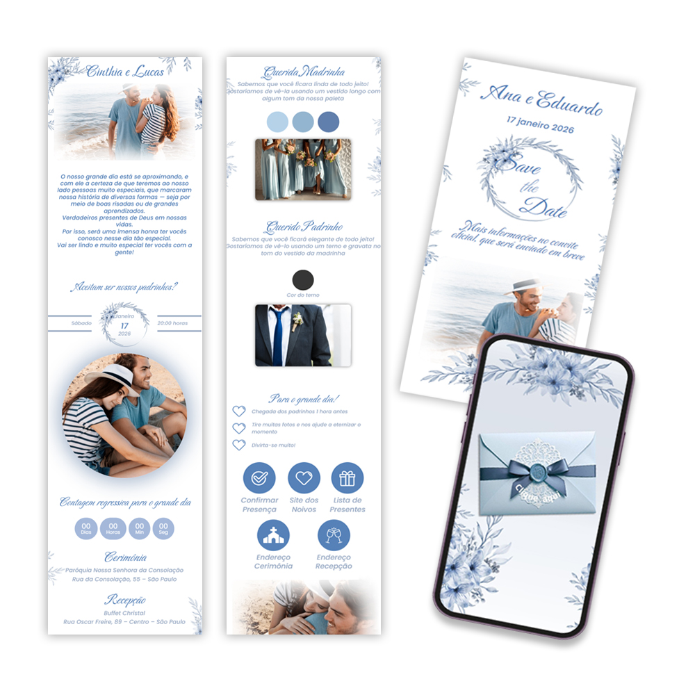- Mesmo tema (site, convite, convite padrinhos e save the date)