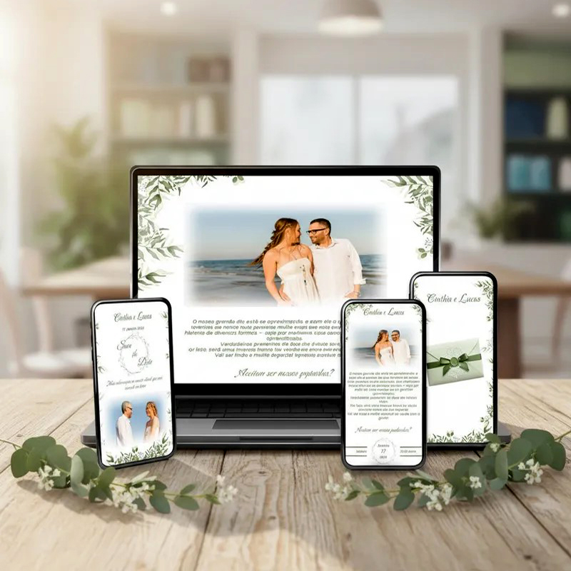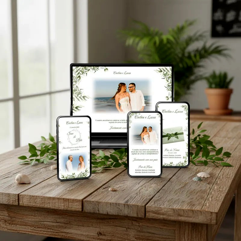 Convite Digital Interativo Casamento Botões e Música – Folhagem